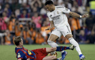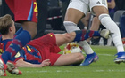 皇马9000万红星破防 目睹巴萨夺冠怒踢水瓶泄愤 狼狈滑倒看呆队友