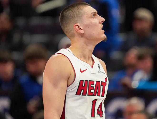 热火队前往客场挑战森林狼队,森林狼队全民皆兵,全队共有6人得分上双,其中,华子砍下26分+5篮板+3助攻+2盖帽,戈贝尔贡献13分+17篮板。森林狼队完全统治禁区,篮板球64-50碾压热火,内线得分62-38完爆热火。热火队遭遇一场28分惨败,鲍科比空砍21分,希罗复出首秀有心杀敌无力回天。希罗替补出战28分钟,15投7中(三分球4中1),罚球2中2,贡献17分+9篮板+3助攻。据NBA官网数据统计,此役过后,希罗生涯三分球命中数来到1000记,正式解锁1000记三分大关。同时,希罗达成1000记三分球仅用368场,NBA历史第6快,仅次于邓罗(343场)、希尔德(350场)、东契奇(351场)、华子(353场)和米切尔(355场)。