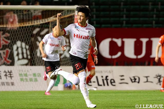 2024赛季,还是高中生的他升至一线队开启职业生涯,以16岁5个月05天打破了J2联赛最年轻进球纪录,一边读书一边踢职业在场上进球!