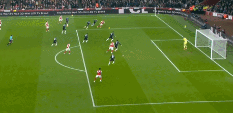 苏维门迪策动反击,特罗萨德左路横传,替补登场的热苏斯世界波直挂死角,4-0!